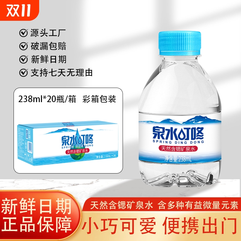泉水叮咚天然含锶矿泉水330ml*20瓶装家庭办公商务天然饮用水