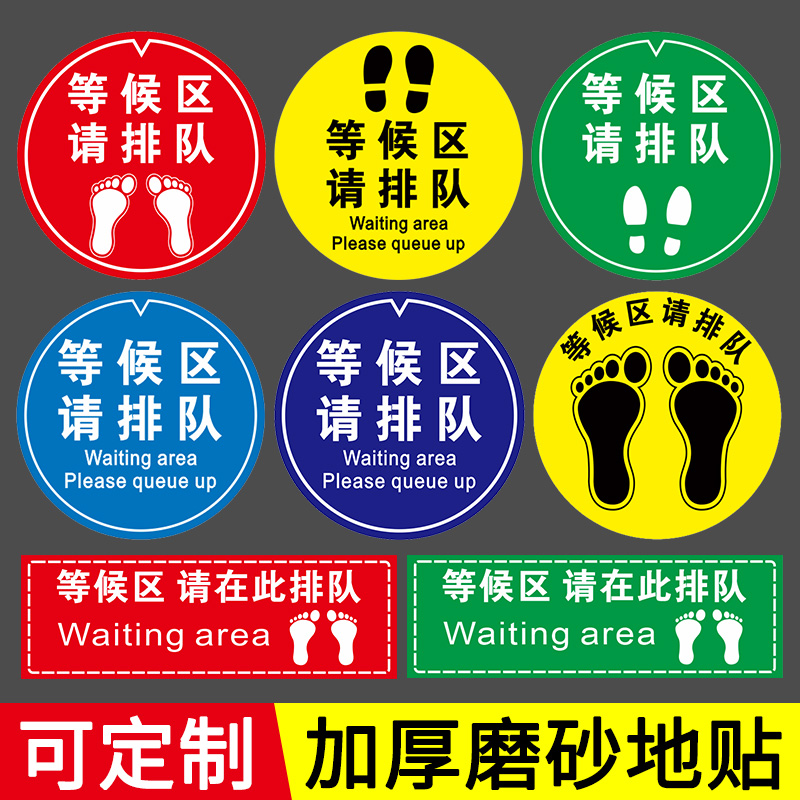 等候区请在此排队地贴一米线外排队等候温馨提示贴有序排队检测体温圆