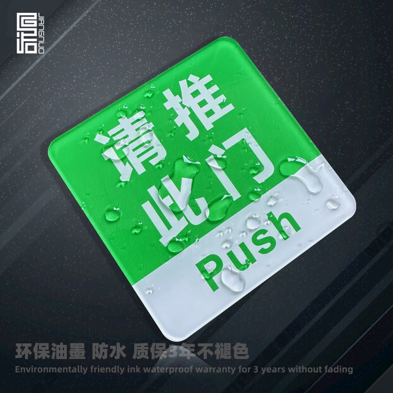 热销亚克力推拉门贴温馨提示牌请拉此门左右门牌贴纸玻璃门贴拉字