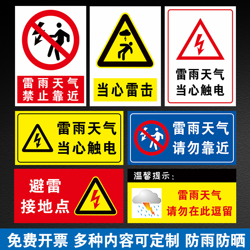 雷雨天气安全标识警示牌禁止雷雨天气充电提示牌当心触电请勿靠近警示
