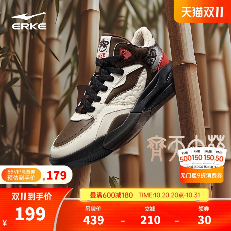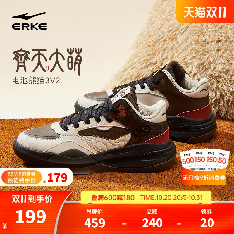 电池熊猫3V2鸿星尔克板鞋男冬季新款加绒高帮男鞋革面学生运动鞋