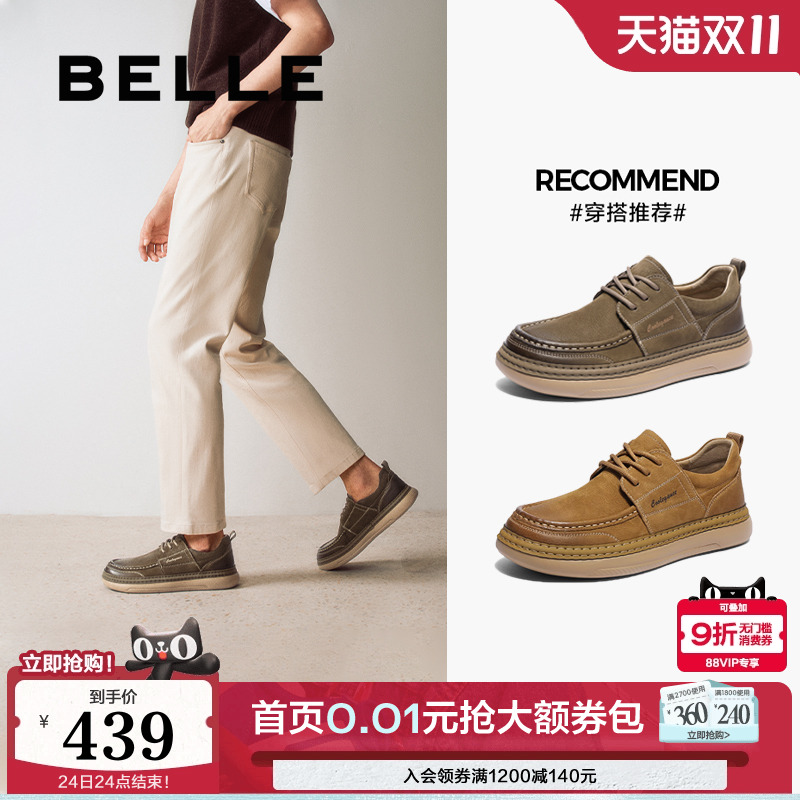 百丽男鞋一脚蹬休闲豆豆鞋025春新牛皮革套脚商务乐福鞋A1818