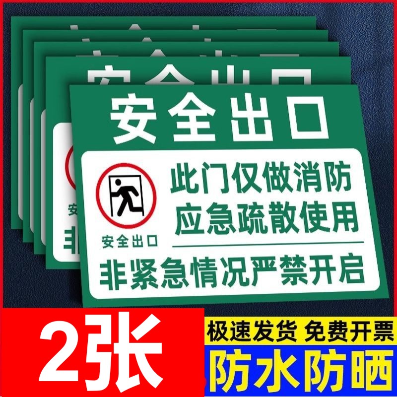 安全门标识贴纸应急出口紧急出口安全消防逃生紧急疏散不干胶贴纸