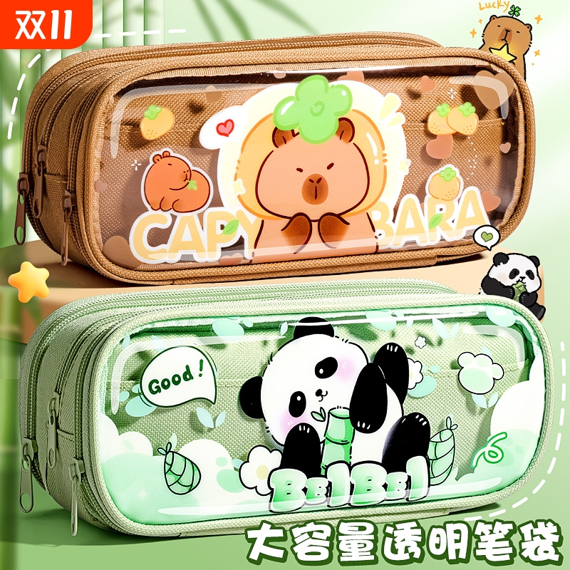 大容量痛包笔袋男孩子小学生女生高颜值初中透明简约黑色帆布多层超大