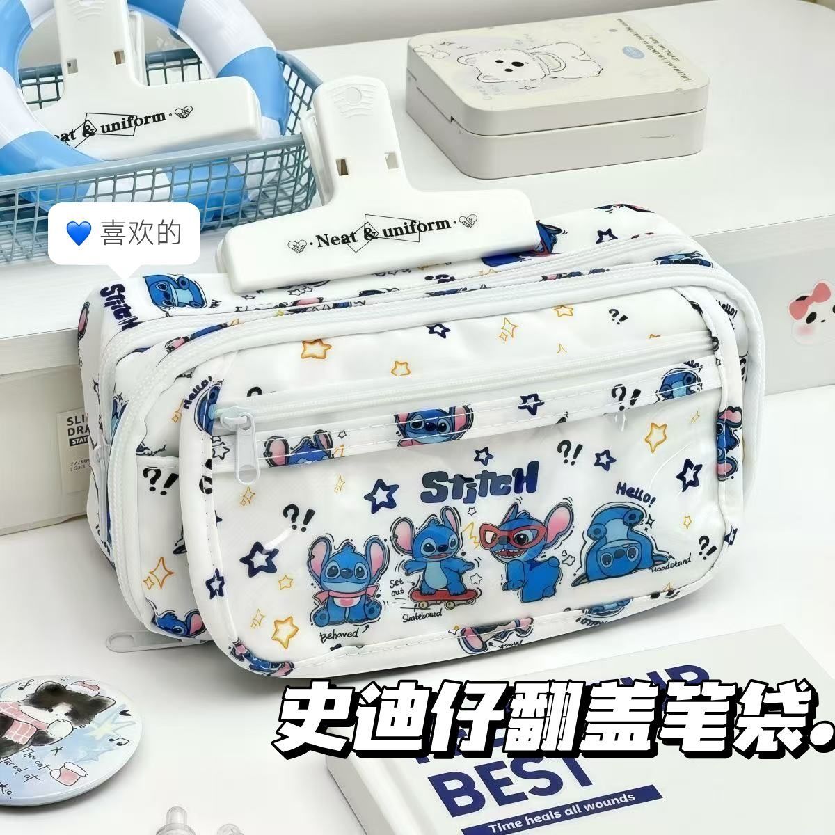 卡通史迪仔透明印花痛包笔袋初中小学生高颜值多功能文具袋铅笔袋