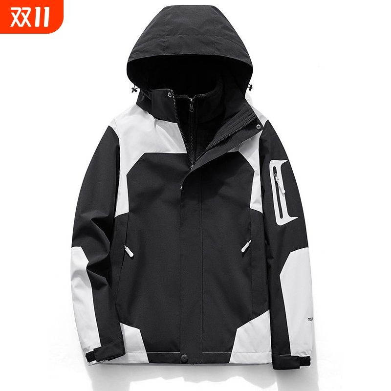 李牌冬季直播冲锋衣三合一户外登山服情侣款两件套高品质内胆黑白