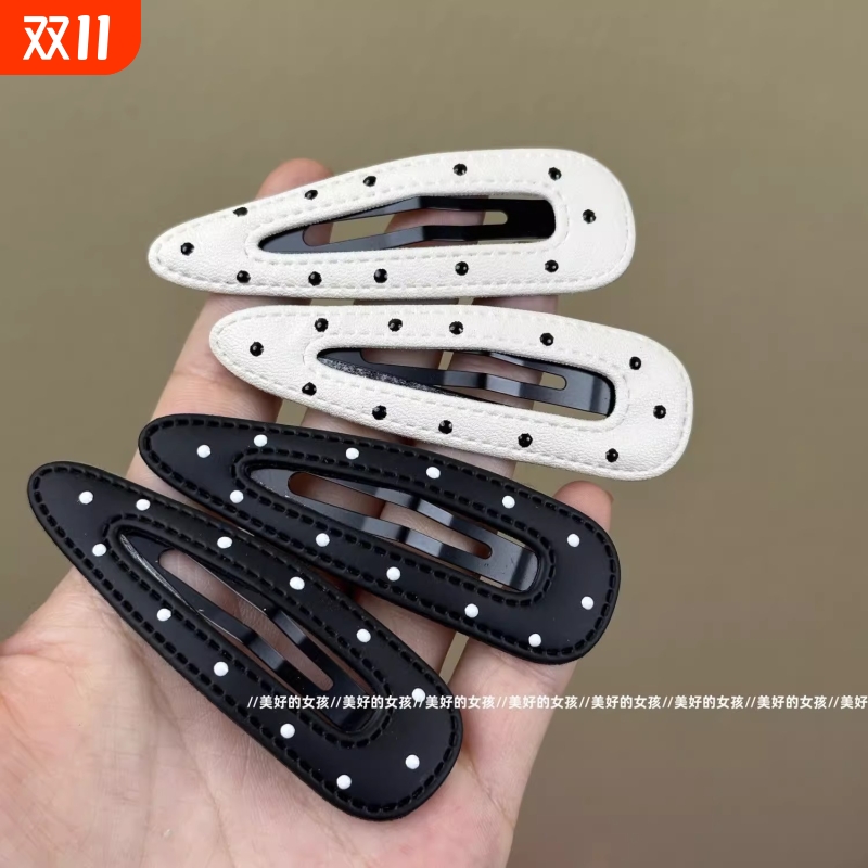 夹边黑白波点水滴皮质发夹云朵BB头饰侧边刘海新款发卡发饰夹子
