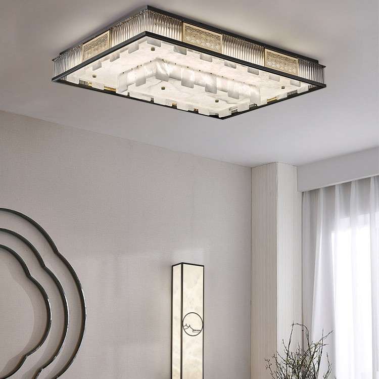 新中式客厅灯主灯大气全铜云石中国风卧室书房餐厅长方形吸顶灯