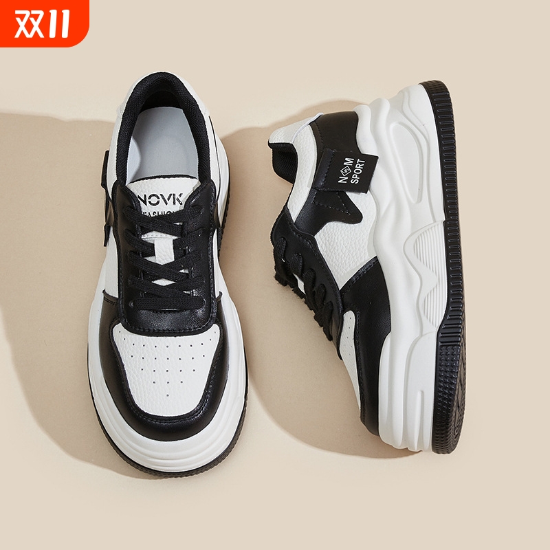 他她女孩厚底鞋子女2025新款秋季真皮防水百搭松糕运动鞋不累脚休