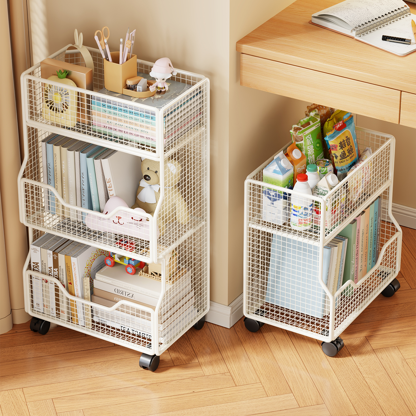 桌面置书柜带桌旁架小推车收纳轮物书架移动桌下可简易落地办公室