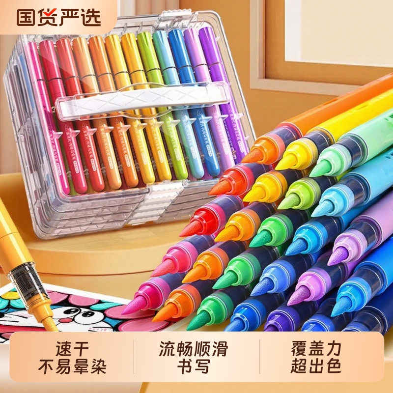 直液式丙烯马克笔软头儿童可水洗小学生美术专用水彩笔不透色可叠色幼