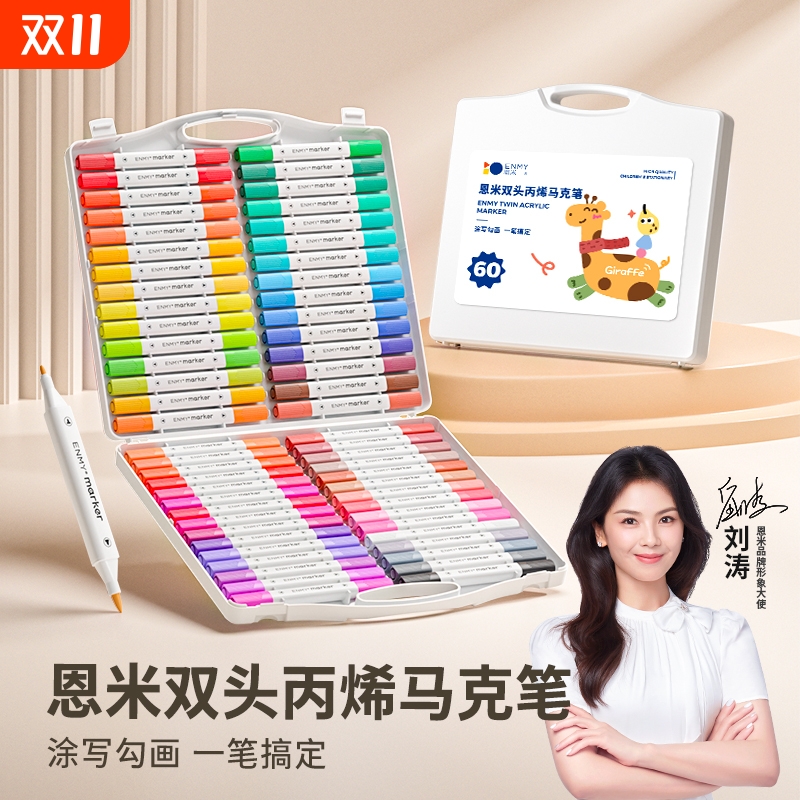【卡皮巴拉】软头直液式丙烯马克笔小学生美术专用可叠色60/80色