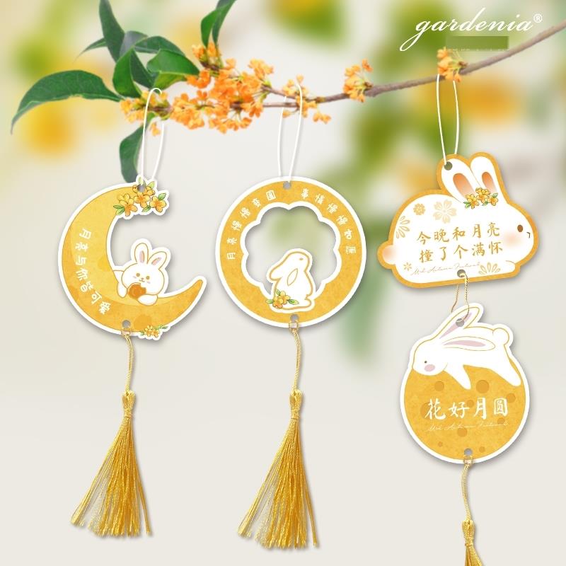 月满中秋节快乐兔子月亮图案吊牌吊卡蛋糕店月饼礼盒挂饰装饰卡片