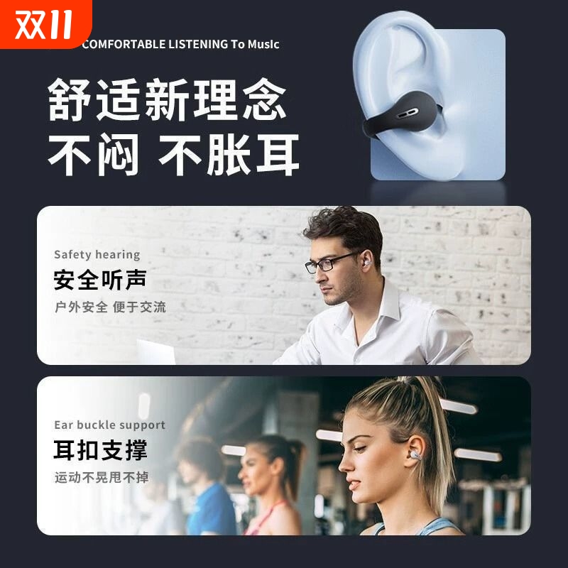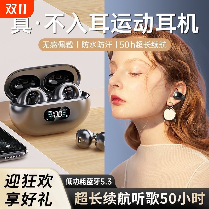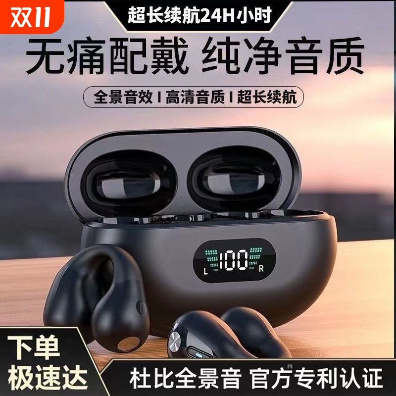 苹蓝牙耳机2025新款官方正品长续航气骨传导耳夹式无线适用华为果