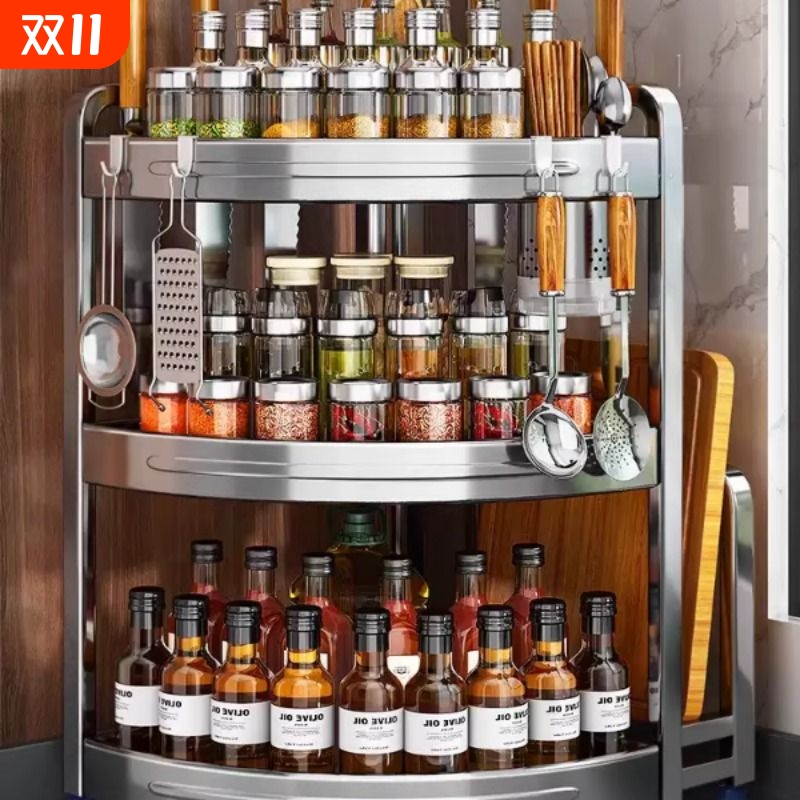 厨房置物架多功能调味品调料架盐调味罐台面三角不锈钢墙角收纳架
