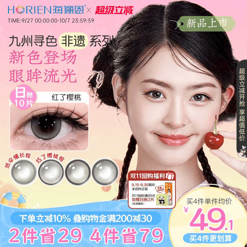 【新品】海俪恩九州非遗系列美瞳日抛10片彩色隐形眼镜红了樱桃