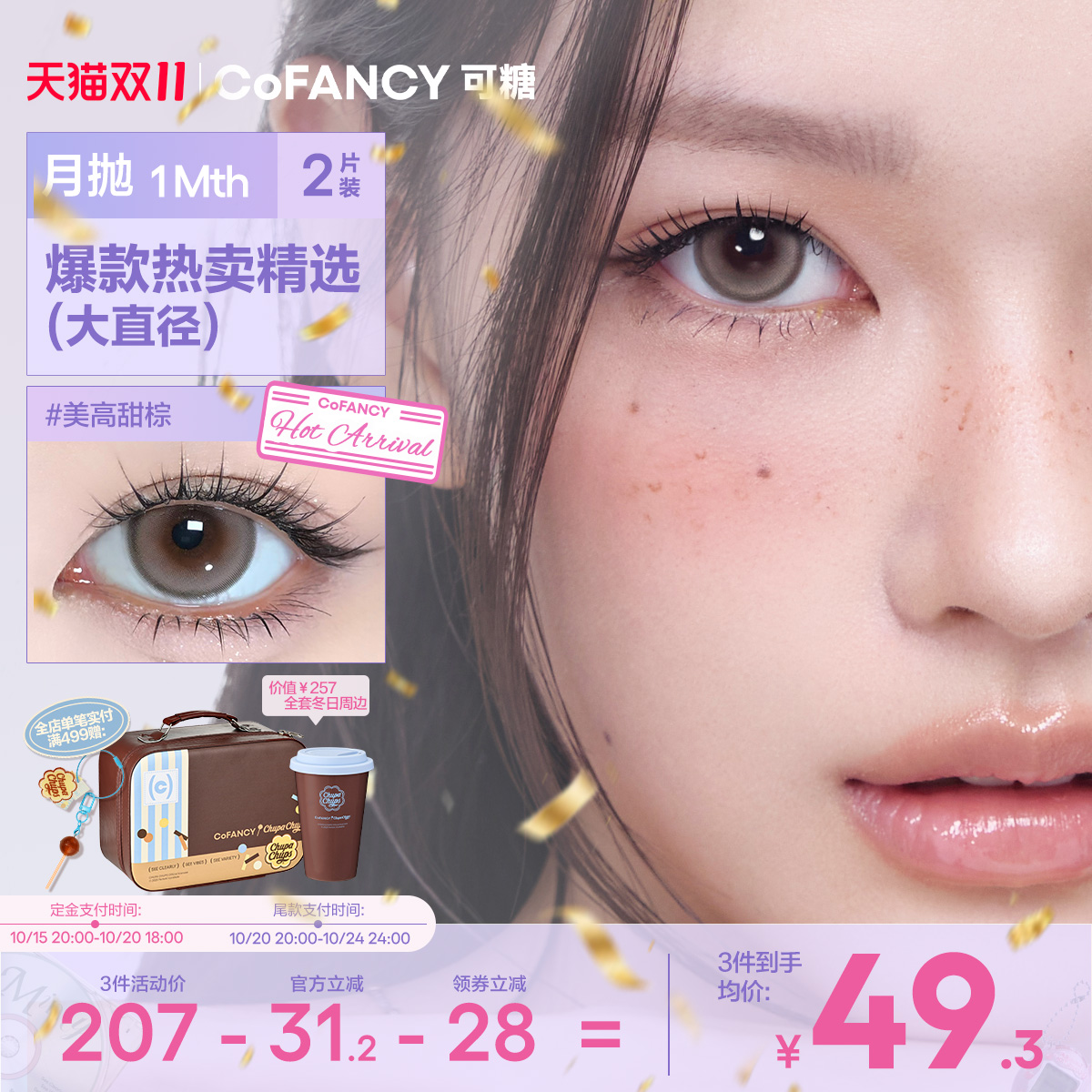 加购!15号付定】COFANCY可糖月抛大小直径隐形眼镜2片三明