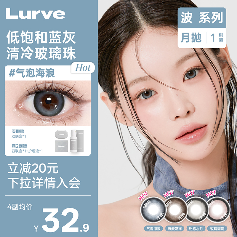 【月抛】Lurve美瞳波系列迷雾水月大直径彩色隐形眼镜1片装*2