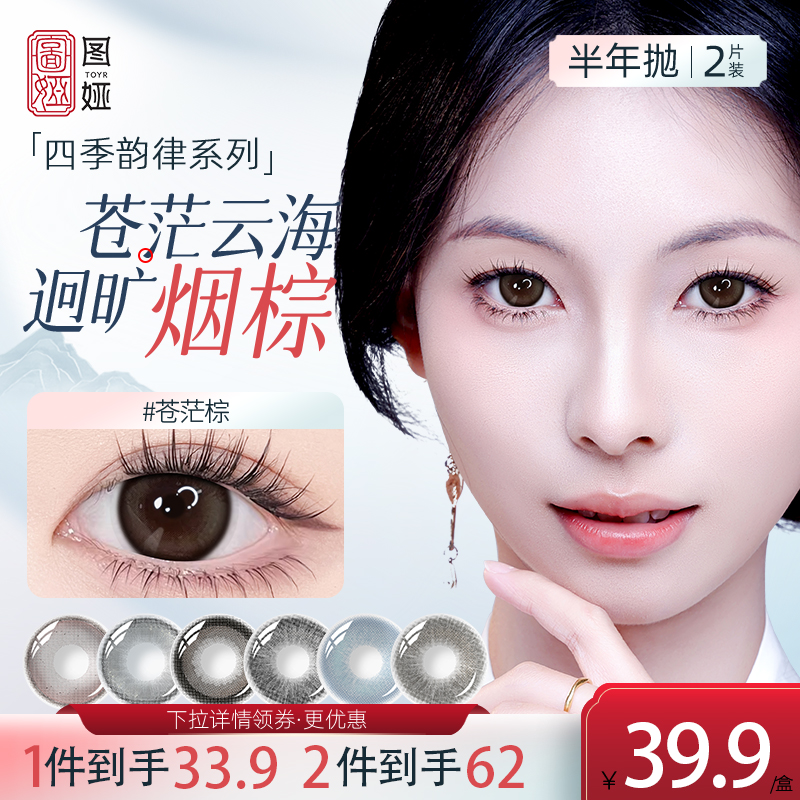 toyr图娅半年抛美瞳女冷月蓝四季系列大小直径近视隐形眼镜2片装