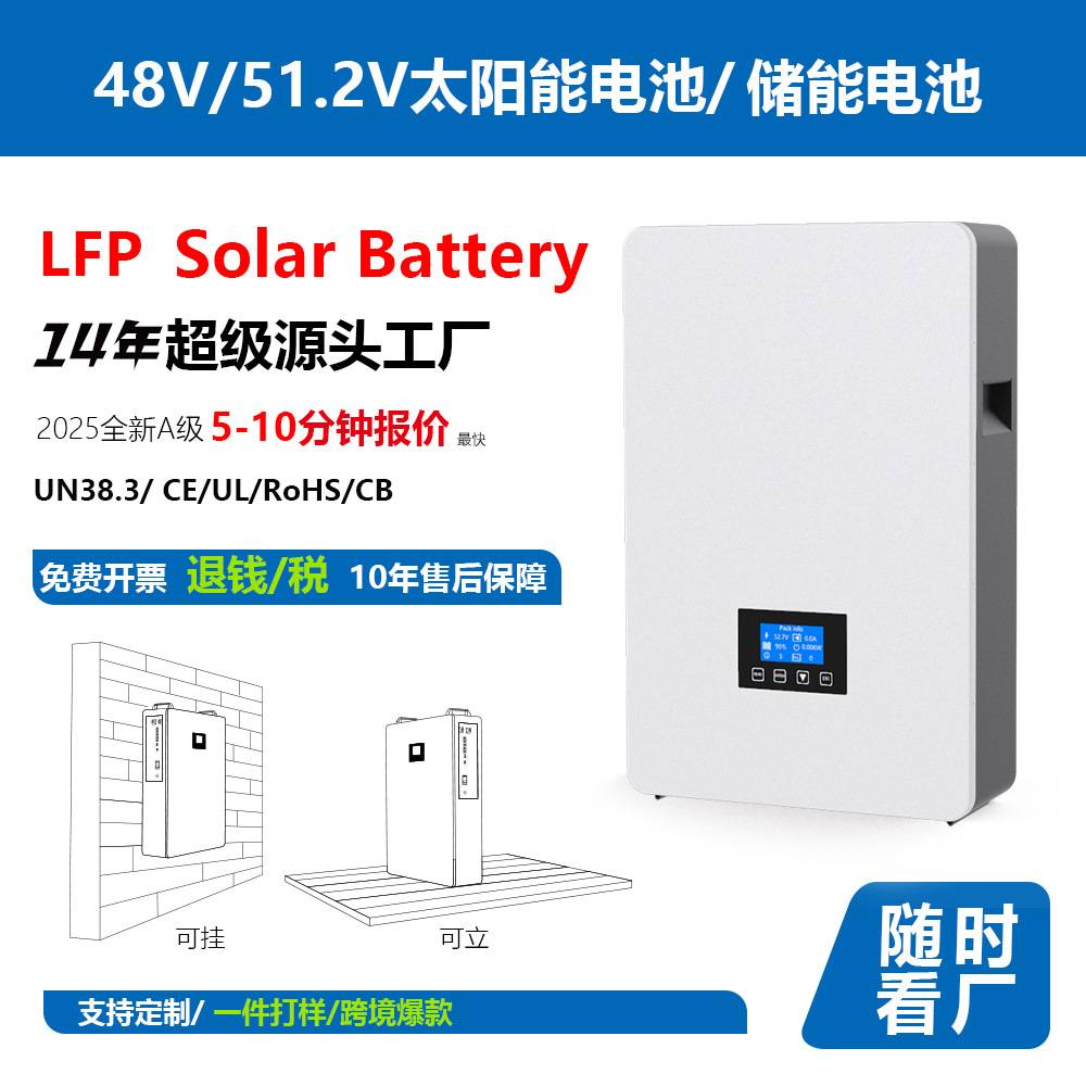 48V壁挂式家庭用储能锂电池光伏储能系统磷酸铁锂12v太阳能电池