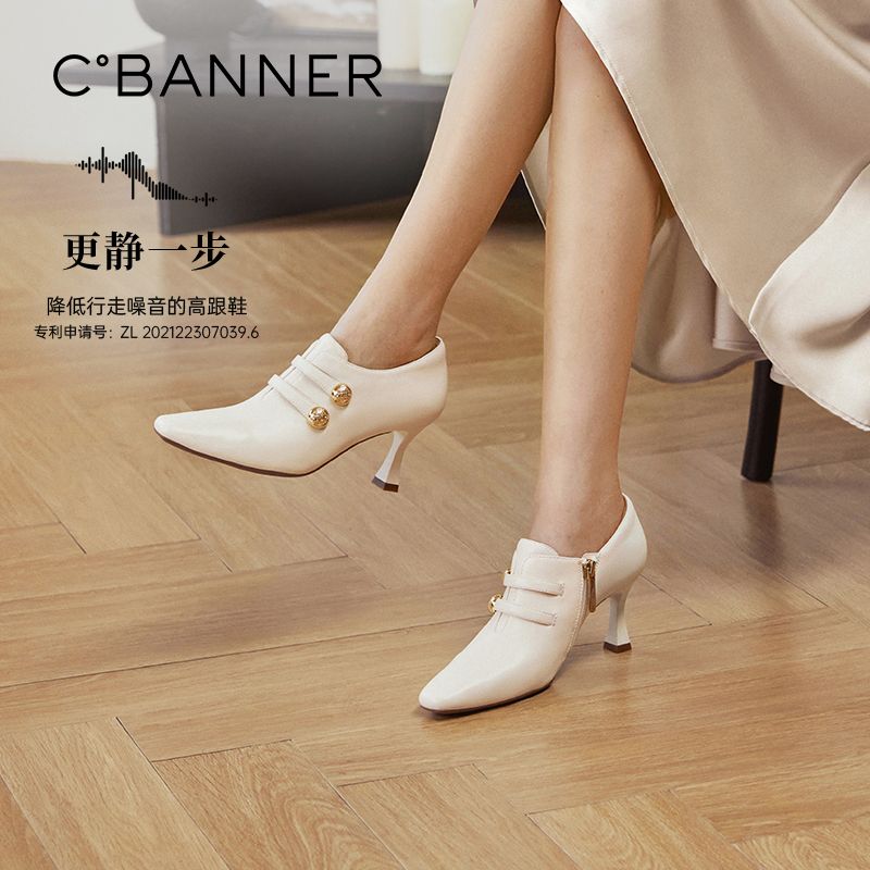 千百度羊皮细高跟踝靴女2025秋冬新款通勤小短靴尖头气质时装靴