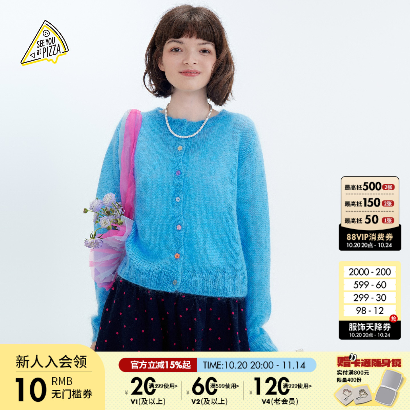 SEE YOU at PIZZA毛衣女2025秋冬新款日系羊毛混