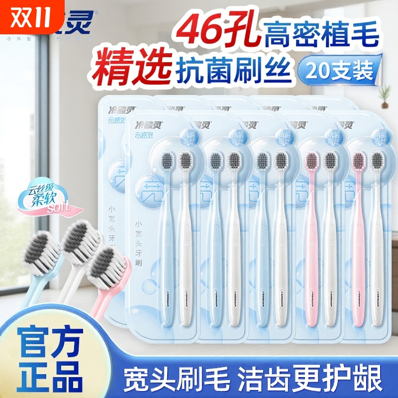 冷酸灵牙刷云感觉护龈宽头软毛家用成人双支清洁牙龈情侣装正品