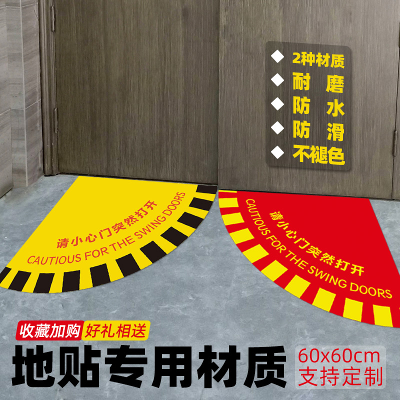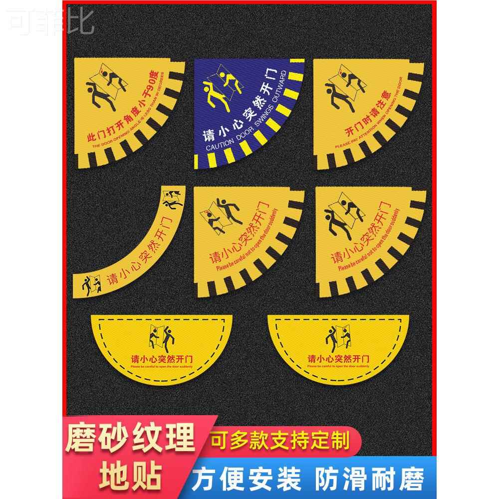 请小心突然开门标识开门提示地贴扇形安全地贴生产车间标示当心开门温