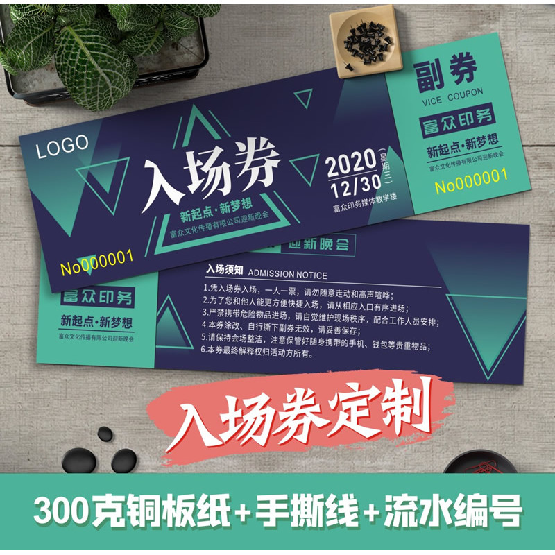 门票入场券年会抽奖券手撕双面