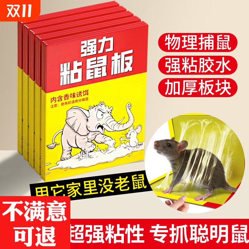 粘鼠板强力胶粘大老鼠家用室内老鼠贴一窝端超粘捕捉神器超强捕鼠