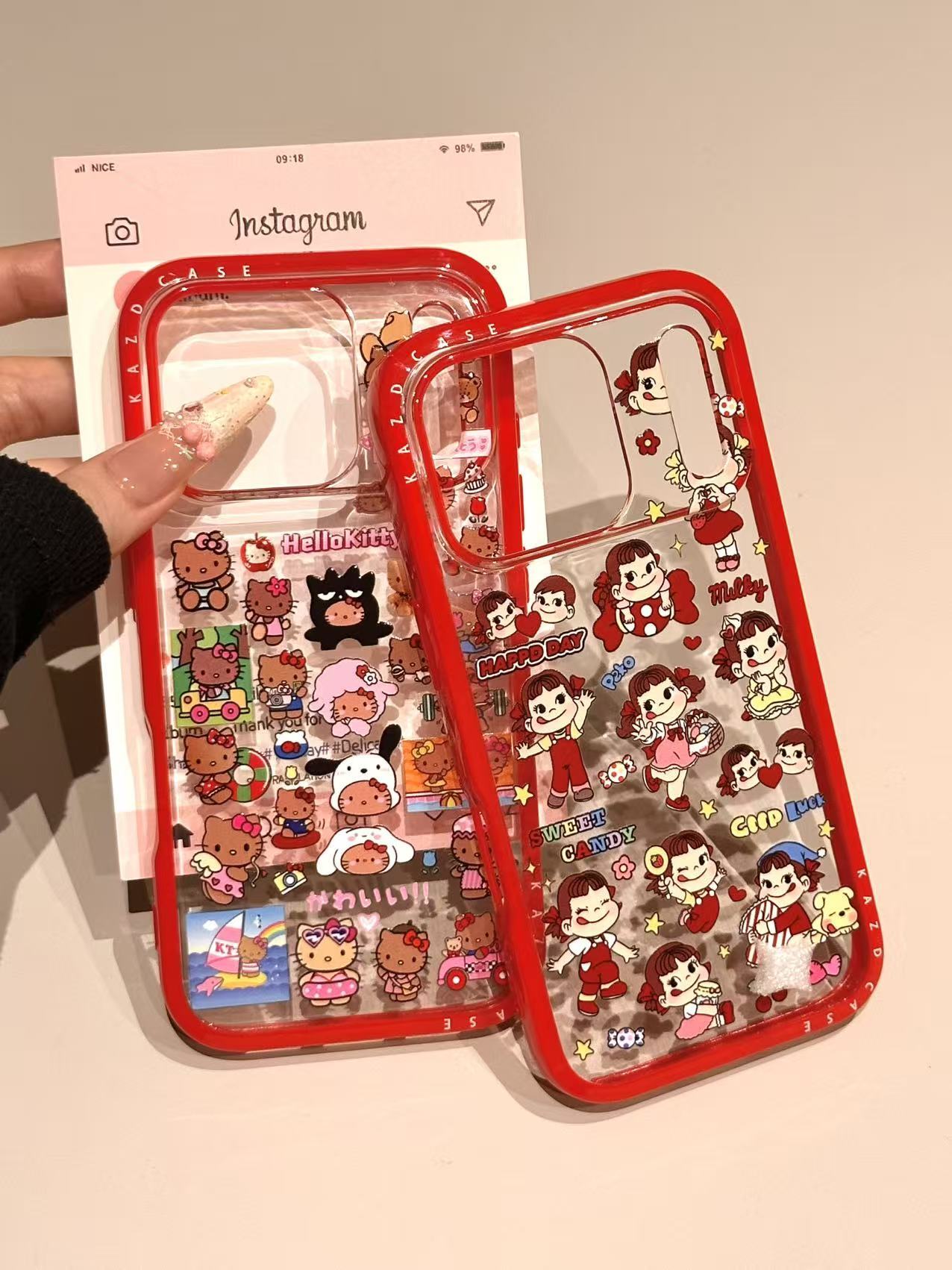 卡通可爱红三丽鸥黑皮KT猫双面壳适用苹果17/16/15/14防