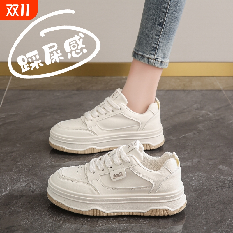真皮女鞋踩屎感孕妇小白鞋女百搭板鞋防滑厚底不累脚老爹运动鞋女