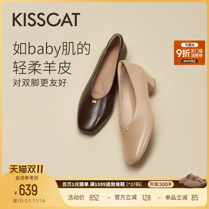 KISSCAT接吻猫[知识分子]奶奶鞋25秋新款裸色单鞋女真皮软