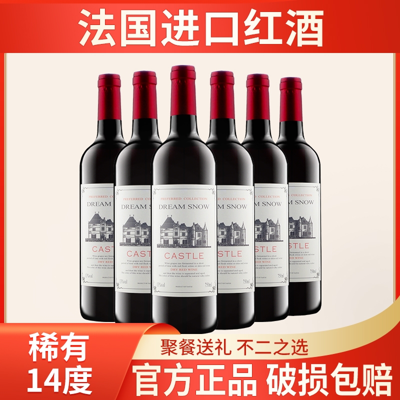 法国进口红酒整箱6支赤霞珠梦德斯诺城堡干红葡萄酒过节送礼婚庆