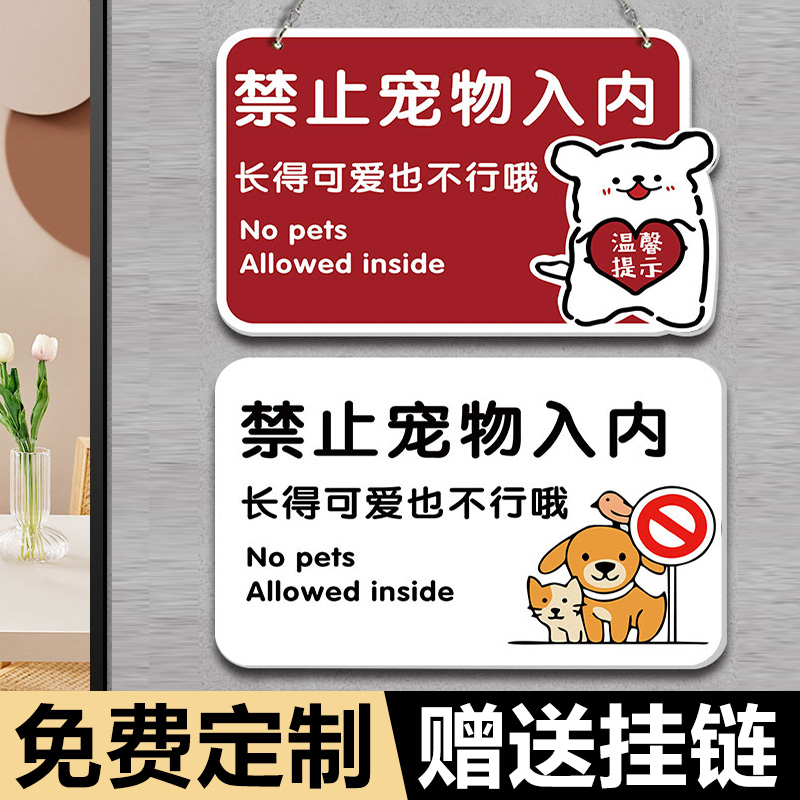 禁止宠物入内提示牌玻璃贴严禁携带宠物猫狗进入告示牌宠物不得不能入