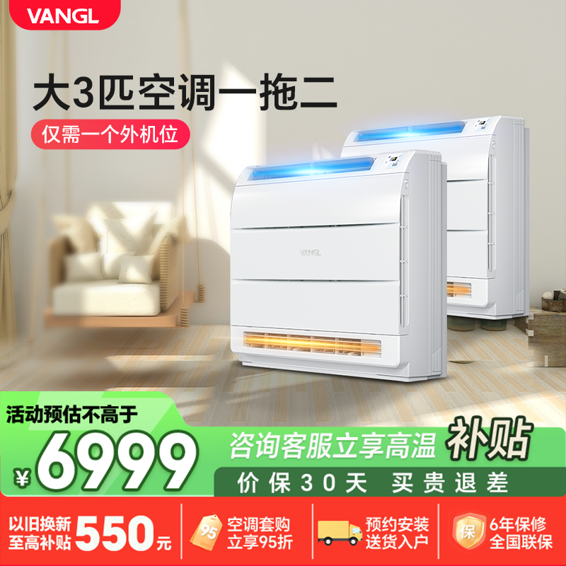 万居隆空气能空调大3匹家用一拖二空调冷暖两用1.5P+2P组合壁