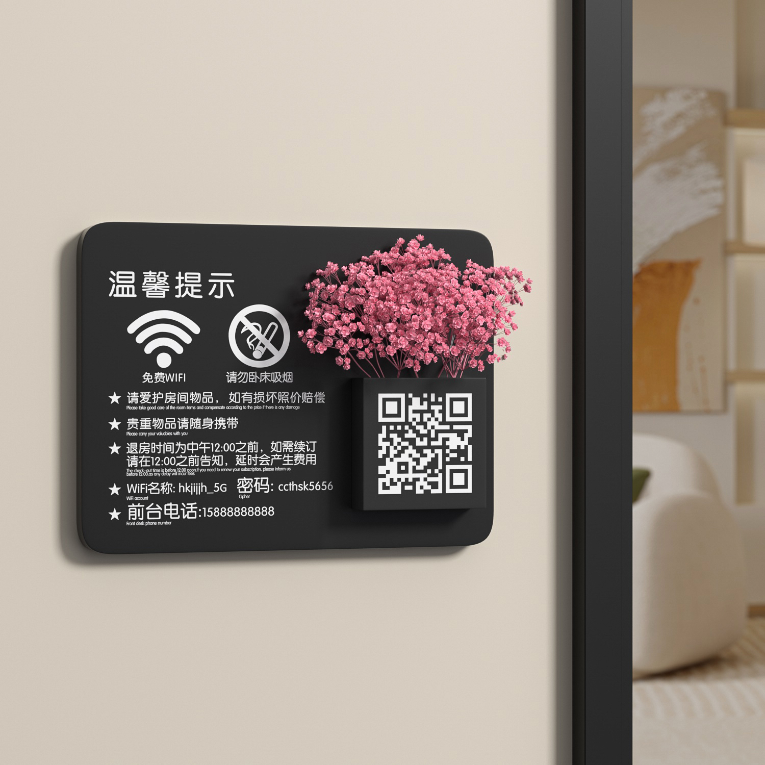酒店客房温馨提示牌标识牌宾馆民宿房间WiFi密码无线网提示牌禁止
