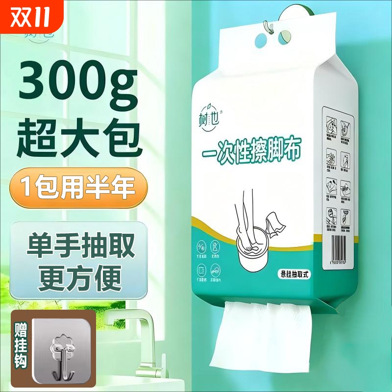 悬挂式一次性脚擦脚纸巾600g加厚加大足浴洗脚毛巾懒人抹家用布