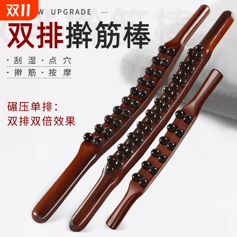 擀筋棒榉木双排按摩刮痧棒全身通用经络疏通揉腹部赶筋棍推背工具