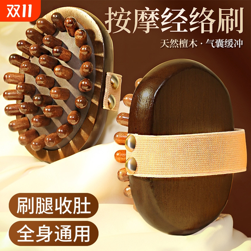高端檀木圆盘按摩梳头部头皮洗头经络新疏通神器男女士指环腹部
