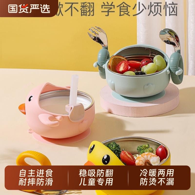 宝宝辅食碗学吃饭训练专用吸盘勺子自主进食防摔硅胶婴幼儿童餐具