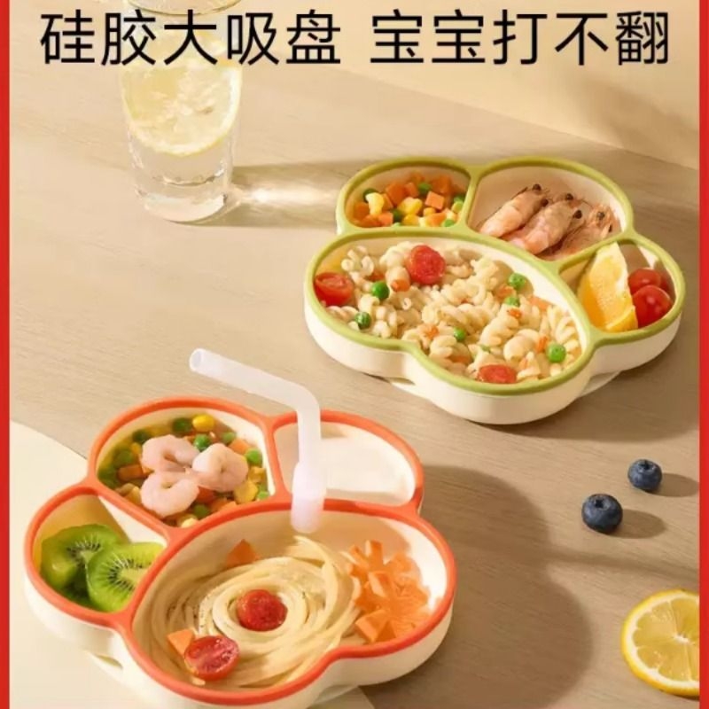 宝宝餐盘婴儿吸盘式辅食碗硅胶自主进食分格专用餐具套装