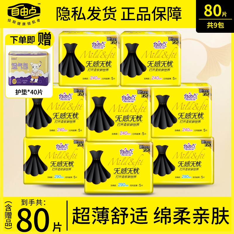 自由点卫生巾无感七日透气姨妈巾日夜用组合装官方旗舰店正品日用