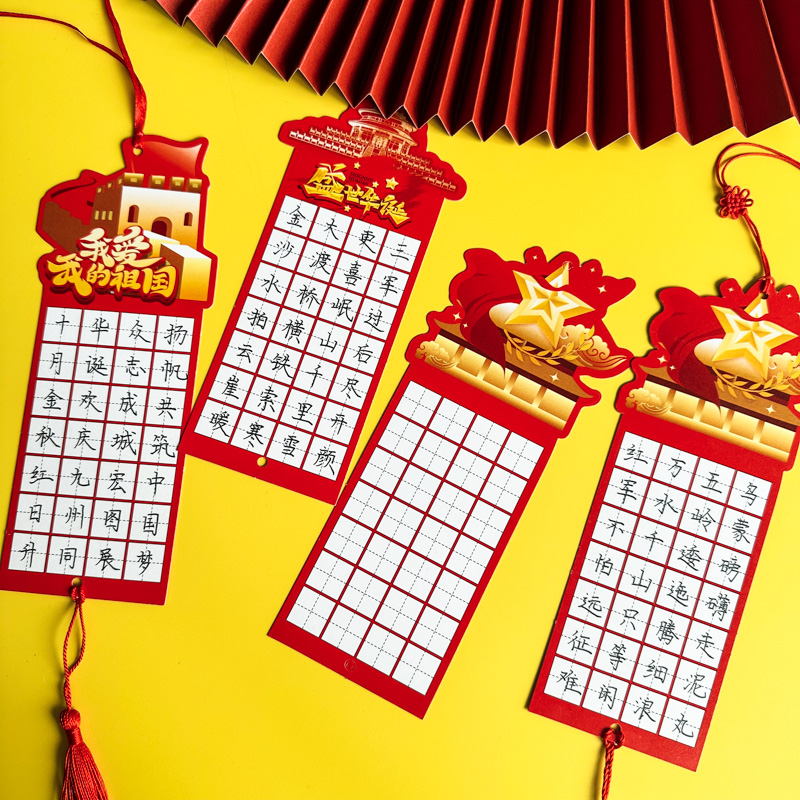 a4国庆节红底硬笔书法作品纸小学生书法纸方格练字专用纸书写纸