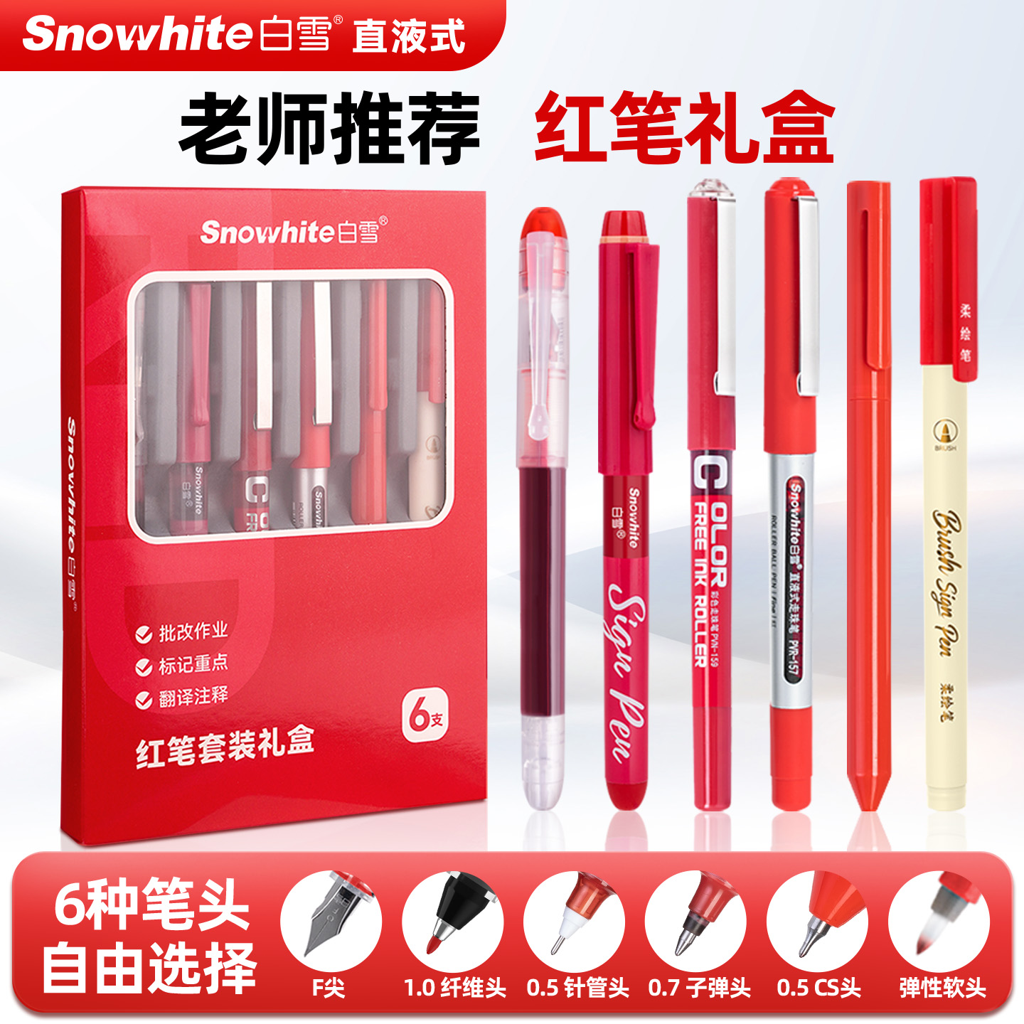 白雪教师节红笔礼盒礼物老师专用批改作业教学生专用红色中性笔初中生