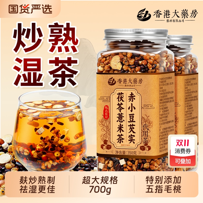 炒熟的红豆薏米去湿气毒排祛湿茶赤小豆芡实茯苓湿气重养生茶调理