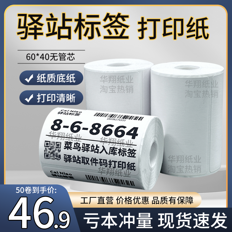 菜鸟驿站标签打印纸热敏纸不干胶快递上架入库取件码贴纸6040