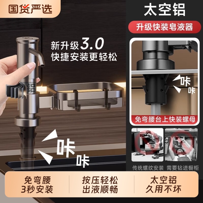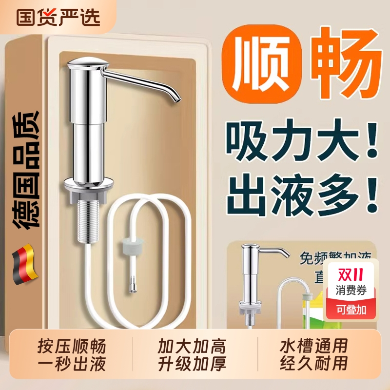 洗洁精水槽按压器304不锈钢皂液器厨房水槽用洗菜盆洗碗槽压取器