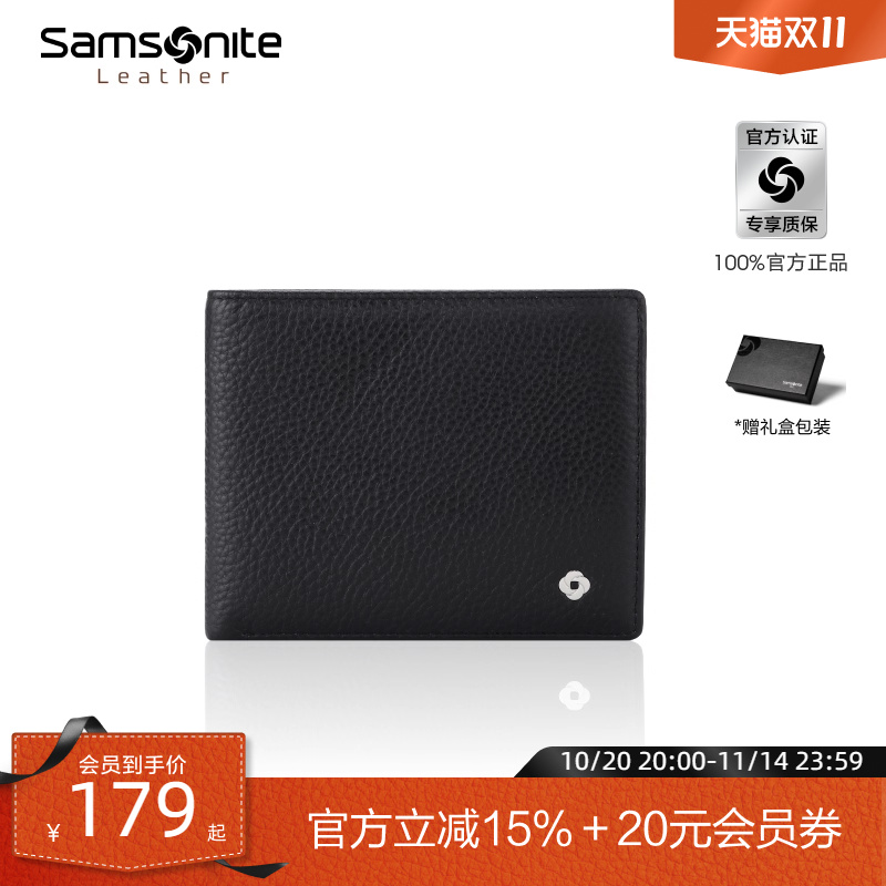 Samsonite新秀丽男士短款牛皮钱包多卡位证件收纳包卡包一体