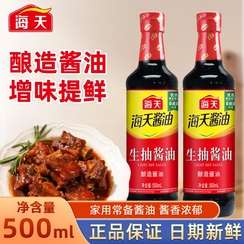 海天生抽酱油500ml/瓶黄豆酿造家用炒菜调味老抽瓶装料酒食用大